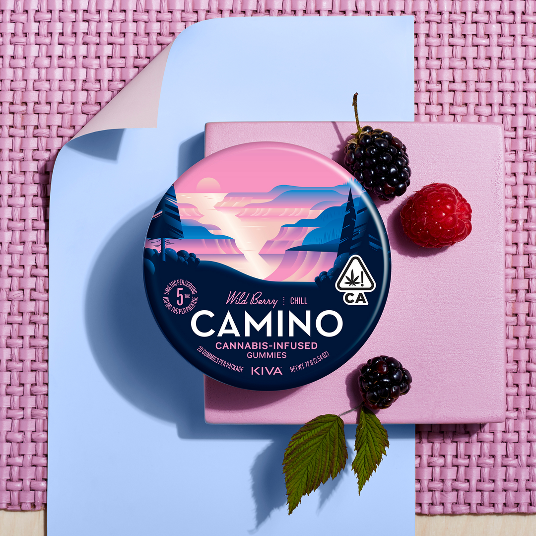 25mg 'Chill' Wild Berry *High Dose*Take the high road to your favorite state of mind with Camino High Dose gummies. Go on a relaxing coastal stroll with Kiva’s Wild Berry "Chill" gummies. The calming, indica-like terpenes pair with notes of wild blackberry and fresh raspberry for a laid-back weekend vibe.