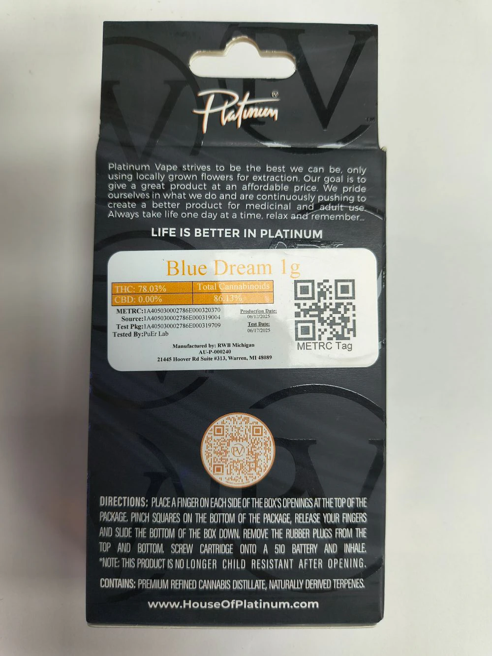 PV | Blue Dream | 1g Live Resin Vape Cart