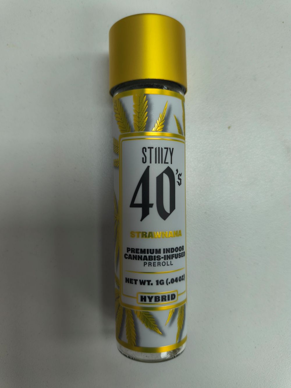 Stiiizy is setting the standard in the pre-roll game with the most revolutionary and innovative products.Elevate your pre-roll game. Stiiizy 40s pre-rolls are setting the standard with high potency, cannabis infused joints coated evenly with kief. Using our proprietary live resin infusion methods, we’ve designed every pre-roll to offer 40%+ THC potency with a unique flavor profile. With a smooth inhale and tasteful exhale, each and every Stiiizy 40 is packed with indoor grown flower, specifically made to ensure a potent and long-lasting high. Spark up the 40s.STRAWNANA / HYBRIDTaste: Strawberry BananaDescription: Perfect for any indica lover that loves to feel the euphoric rush of energy, Strawnana 40s will keep you feeling creative and motivated. Just like in its name, our Strawnana hones in on the full and impactful aromas of both strawberry and banana.Feeling: Relaxed, Happy, Talkative